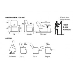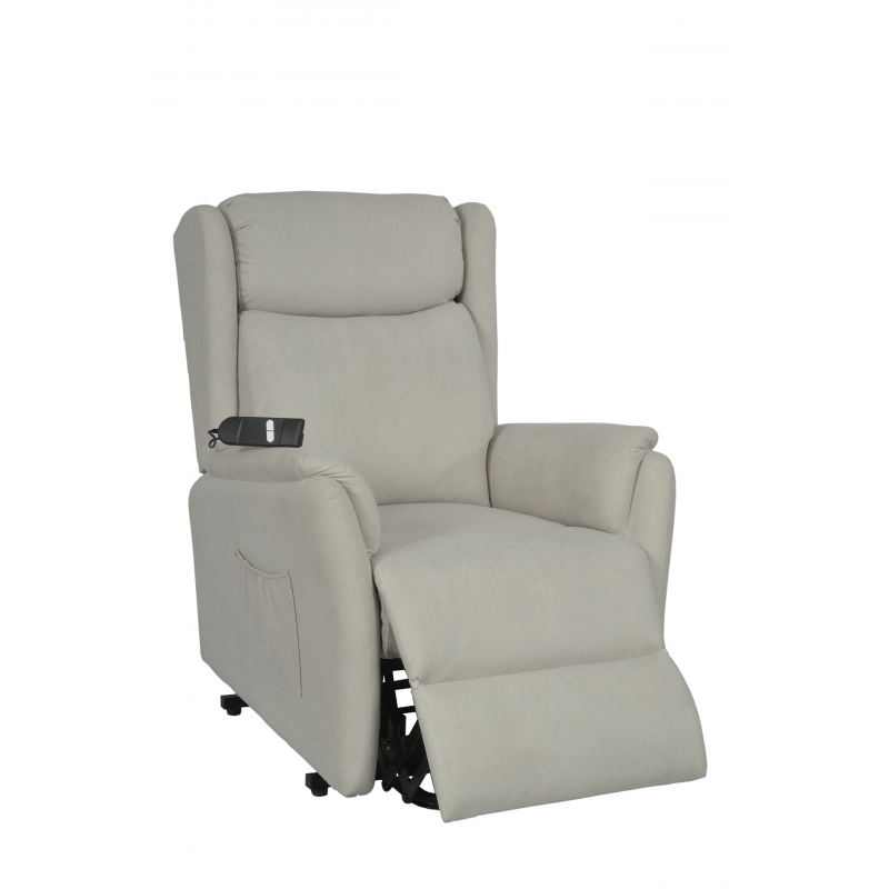 Fauteuil releveur 2 moteurs, muni d'un revêtement nouvelle génération avec traitement déperlant pour éviter la pénétration immédiate des liquides (facile à nettoyer à l’aide d’un chiffon/ éponge absorbant), Il est « respirant », répond à la norme anti-feu EN1021-1 (test de la cigarette)