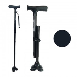 Lorsqu'elle est posée, la canne tient toute seule. De plus, elle est pliante, ce qui facilite le transport dans un sac.