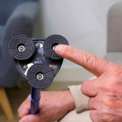 Cette canne dispose d'un embout stabilisateur révolutionnaire. Cet embout pivote à 360°, ce qui donne un effet très dynamique et sécurisant à la marche. Elle dispose également d'une poignée ergonomique en bi-matière souple ce qui est très confortable.