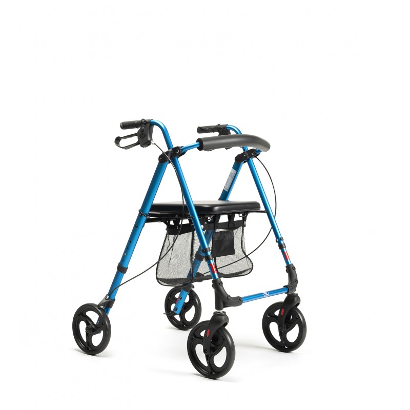 Le Rollator Ecoplus est un rollator 4 roues ayant la particularité de posséder un réglage sur l'avant et l'arrière permettant de régler la hauteur de son assise.